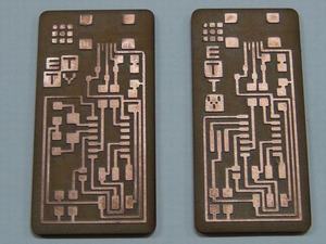 I fabricate the two boards (with resonator model and without one). For mill it I placed both boards in a same image file.