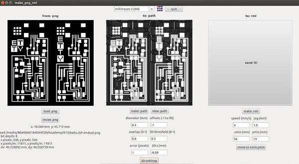 In order to generate a circuit path for the Roland Modela, we used the Fab Modules in Ubuntu OS.