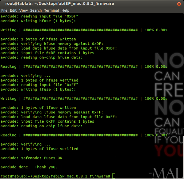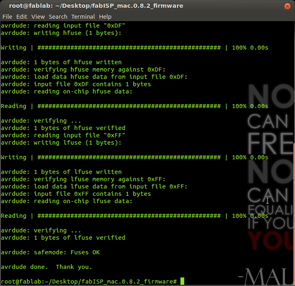 root@fablab:~/Desktop/fabISP_mac.0.8.2_firmware# make fuseAll was correct: