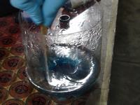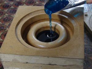 Final pour the resin in the mold and close the mold until you see the resine exits the overflow holes.