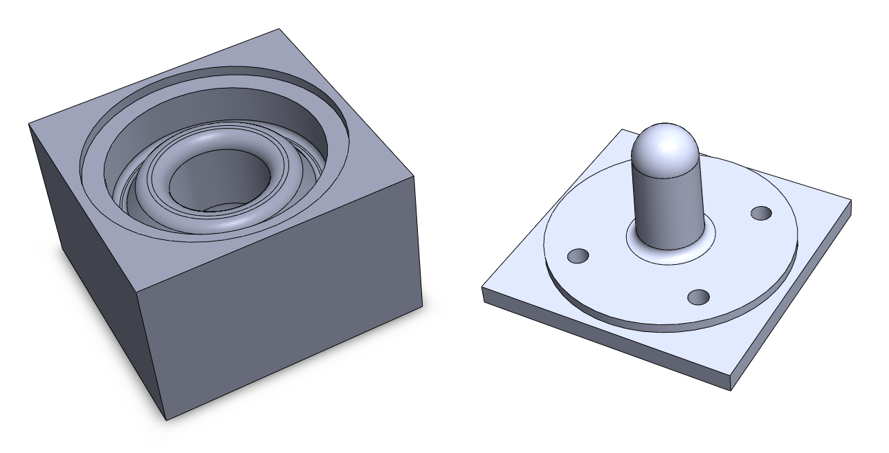 Then create the mold cavity and the mold core CAD draw. The mold core have over flow holes Finally save it in .stl format.[.STL Files]