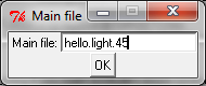 Step 01.- Write the name of the program file, go to > in the new window that will appear write hello.light.45 (the file extension .c has to be omitted)