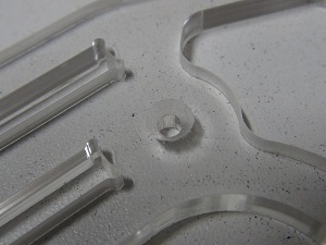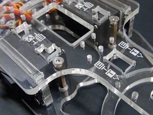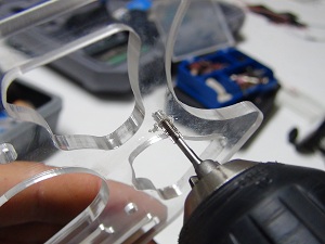 To fix for example the servomotors, I threat the acrylic structure with a M3 tap (helped with the electric screw driver).