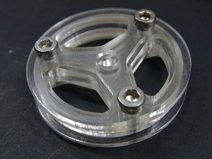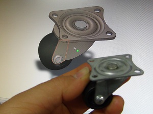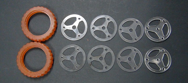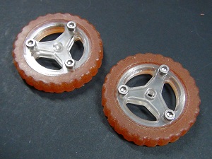 The wheels has two parts, the rim (cutting files) and the tire (mold file). The urethane rubber have excellent grip, so tire was made with molding and casting process using this kind of rubber.