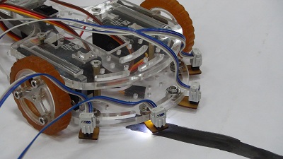 The line tracker program guides the robot over a black line on a white surface.