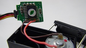 Take out the four screws at the bottom. Then you can separate the servomotor housing in 3 parts: on top you can find the gear train, on the bottom we find the motor, the potentiometer and electronic board.