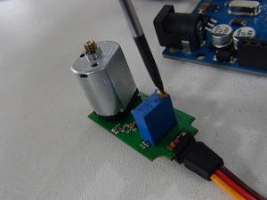 The idea is to convert the potentiometer to a non-variable resistance, to deceive the control board that the axis is always in the middle position; so when the angle signal is sent the control board will try to change the position, and will set the speed proportional to the angle set in the signal (90° = zero speed / 0° or 180° = top speed ).
