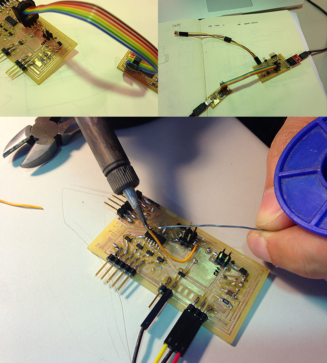 The soldering part of the process went well, but as soon as i started programming the board, it just didn't got recognized by the computer and i couldn't do anything.... i spotted some connections that weren't fully working, but even after i fix them the board wasn't working.
