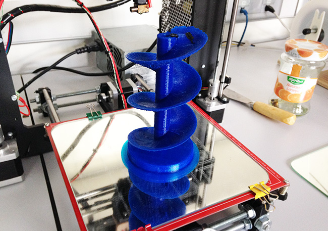 I 3d printed the HELIX and the pipe/deposit connector. The helix , wich i thought was to give me some serous trouble when 3d printing, didn't go bad at all, but the connector got some overhanging to be corrected in a later stage of this spiral development.