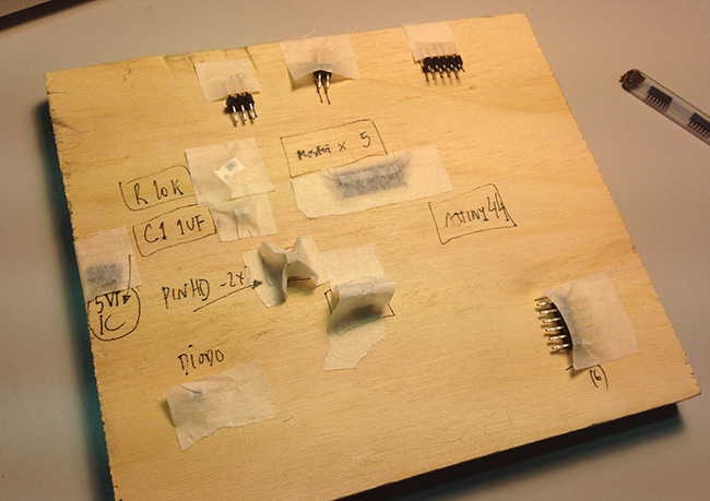 I was afraid of the trough-holes to remove the copper around them, but it turned out pretty fine. I picked the components and started assembling the circuit.