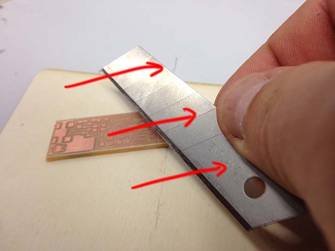 Using a x-act blade (a big one) rotated in a small angle with the board, and some steady and firm movements, we gently slid the blade in the shown direction to scratch off the dirt.