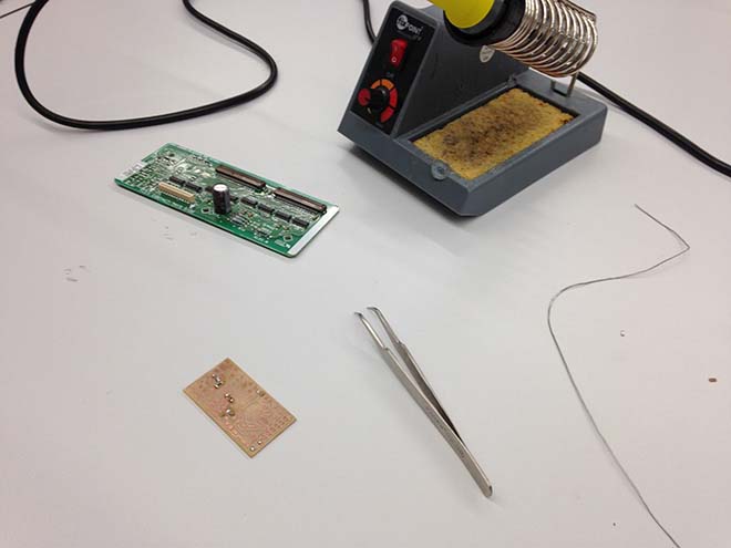Now it was time to stuff the board with the components. But because i don't have experience with soldering and didn´t wanna risk ruining my PCB at first attempt, i started by trainning with a old pcb we hab in the lab....