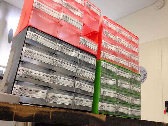 here at the lab we bought some storage/sorting boxes for the components, in order to make things tidier and avoid switching components. It was now time to collect the componentes necessary for staffing the board.