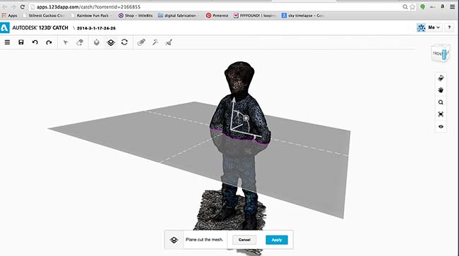 Then i took some pictures of my son, to try and have a 3d model of him to later print in a 3d printer, and uploaded them to 123dcactch online. They were 40 pictures and were taken early in the morning in a rather cloudy day, before getting him to school (poor kik, it was rainning and everything, lets hope he doesn't become a socipath because his father went to fabcademy :)), so there was constant and difuse lighting, wich revealed to help the app to deliver a 3d model. After i uploaded the pictures in the website. It takes a while to process the pictures (you should just be doing something else at the same time, while it processes the pictures, otherwise is just plain anxiety and waste of time).