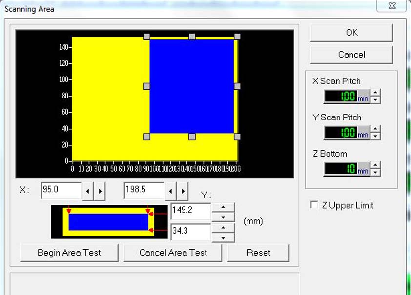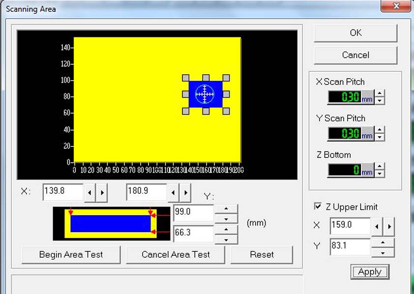 Adjust scanning area draging the blue box holders (XY)