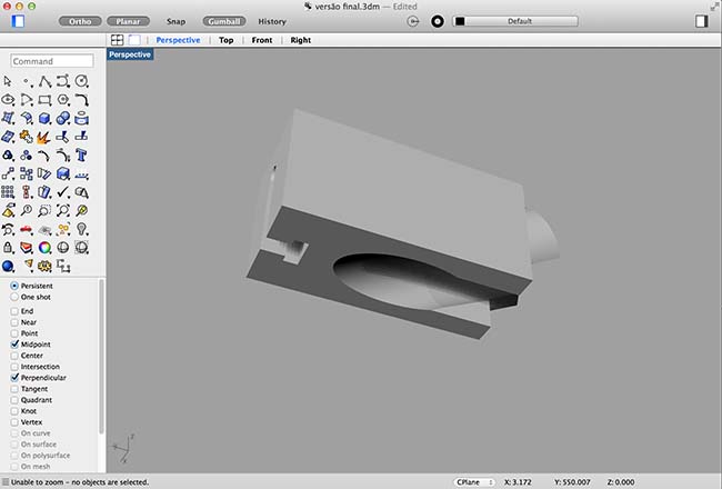 Here are some screenshots of the modelling process, i wasn't using Rhino since the 'computer-aided design' assignment, in wich i started my first attempts on 3d modelling, so i had a lot to learn, since i had just a couple of days working in Rhino. But now i'm definitely on my way to improve in Rhino, i can start to feel that i can start to deliver 3d models in it, maybe not the best ones but i'll get there.