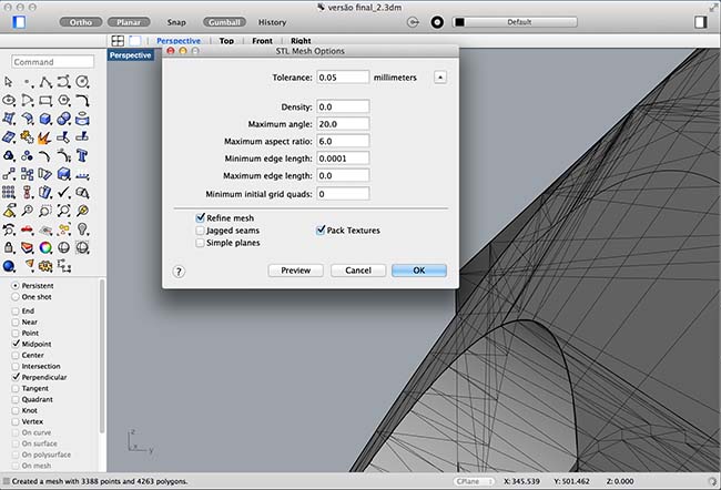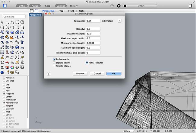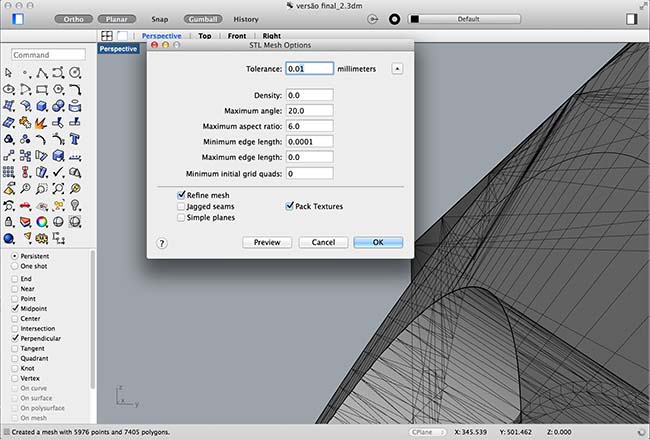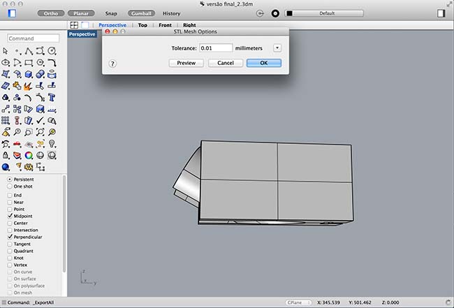 After conclusion of the model, i exported the file as .stl, in order to have it sent to the 3d printer, but had to make some adjustements to the mesh: