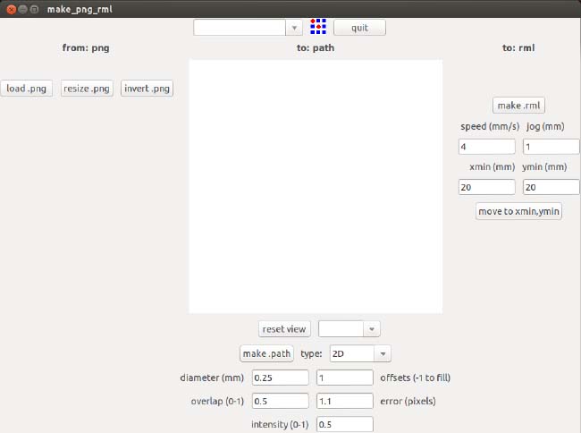 Press make .path and the path will show in the right side. Take the mill to the XY position where you want the milling to start, using the insert boxes in the right of the screen and pressing move to xmin, ymin