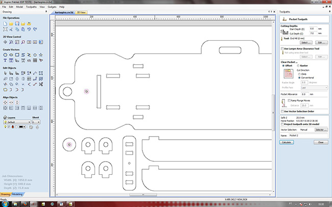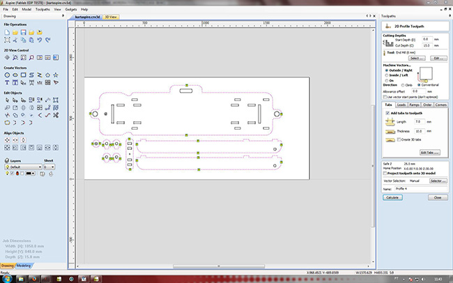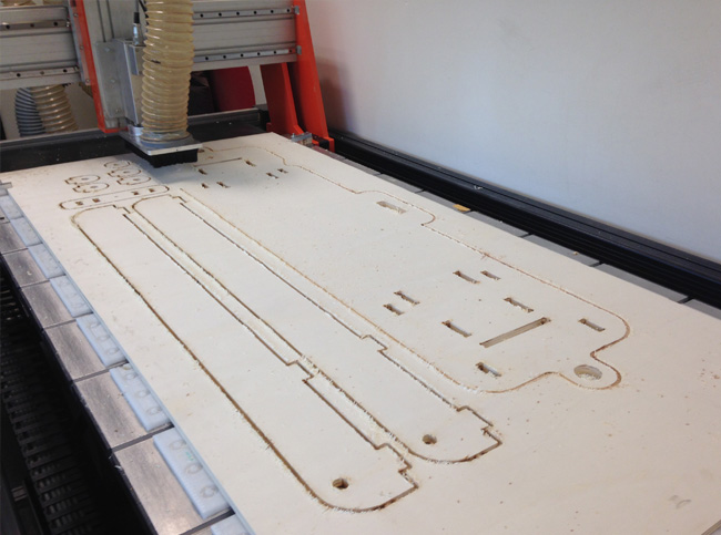 With all settings fixed, our Ouplan started machining the plywood board.