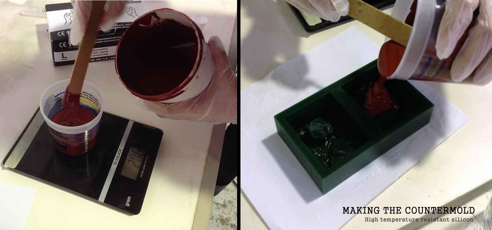 03 Pour the mix in the countermold making sure you are not leaving big air bubbles inside.