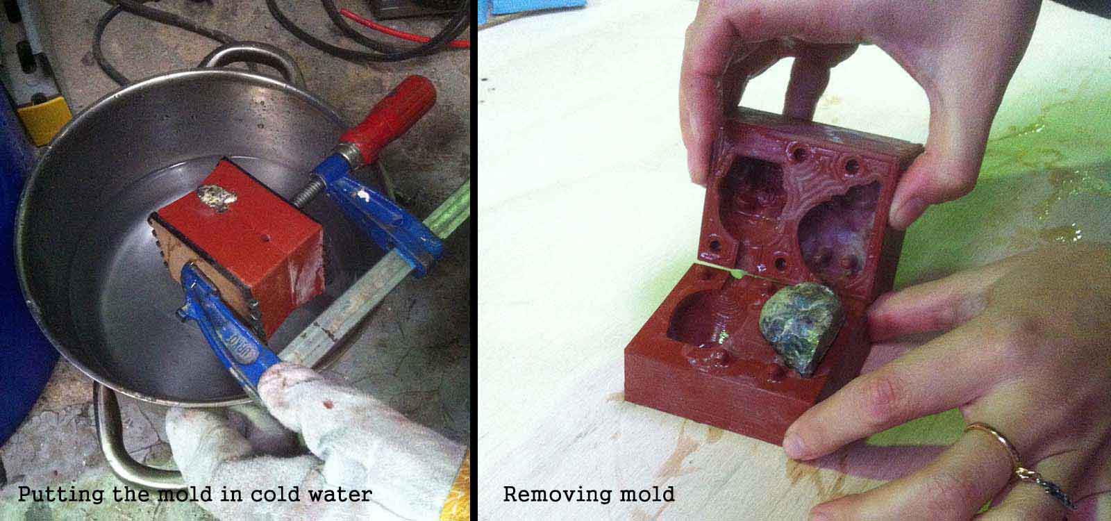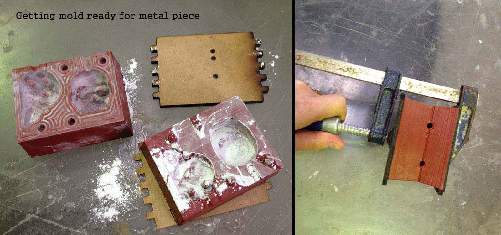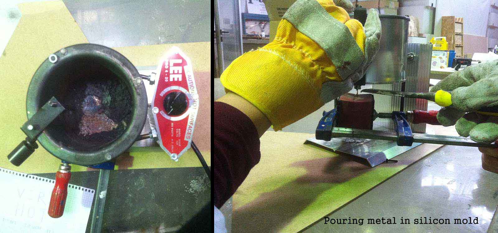I was ready for casting the final pieces. In order to pour the metal I took the following steps: