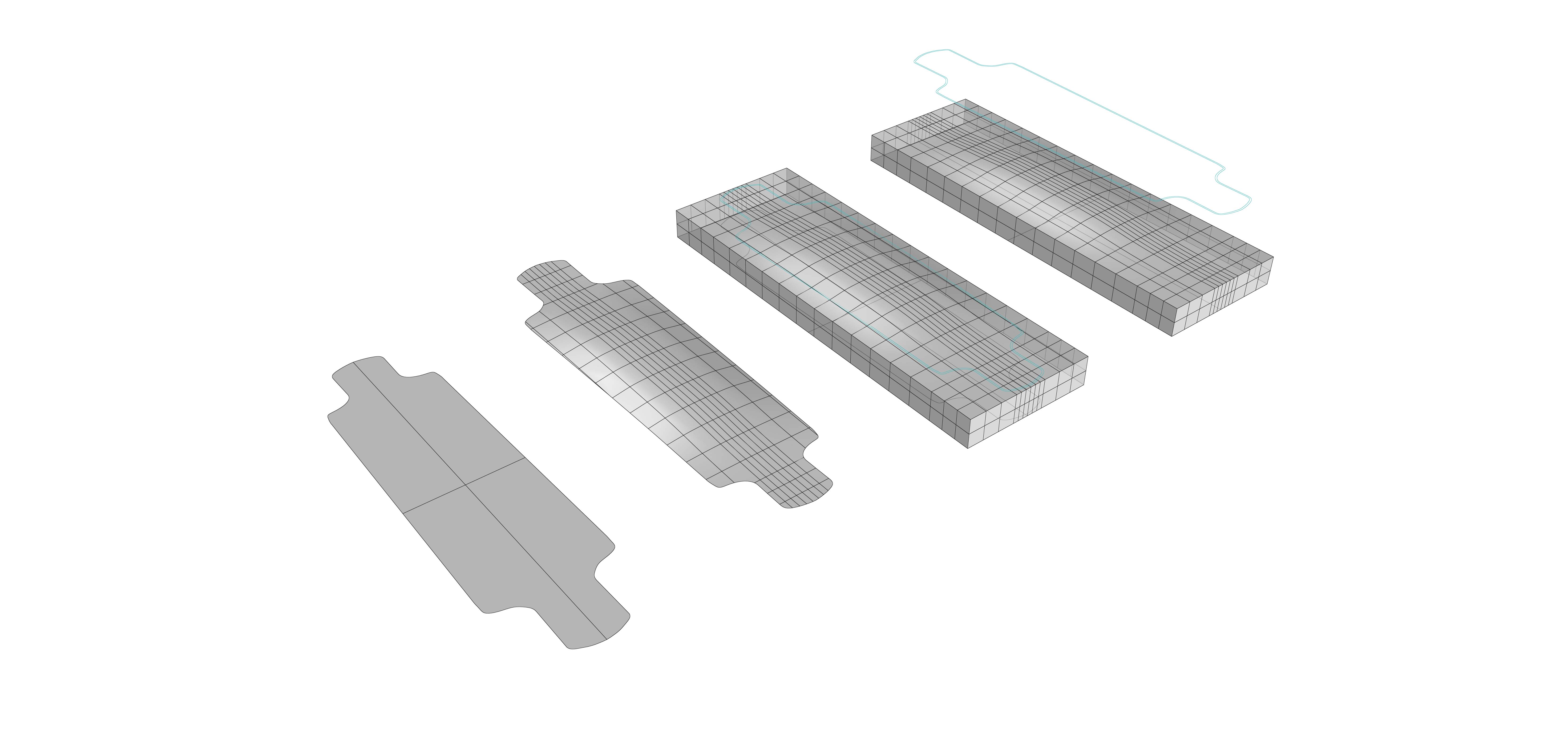 The first step for making the skateboard is to design its form and curvature. I used Rhinoceros to 3D model the curves and make a 7cm thick mold for milling. The best way to make the mold is by putting the highest point of the mold on top, so the surface bends easier while you put it in the vacum bag. This means that the mold has to be the positive part of the curvature. My skateboard was just a little concave in the middle and and flat in the sides.