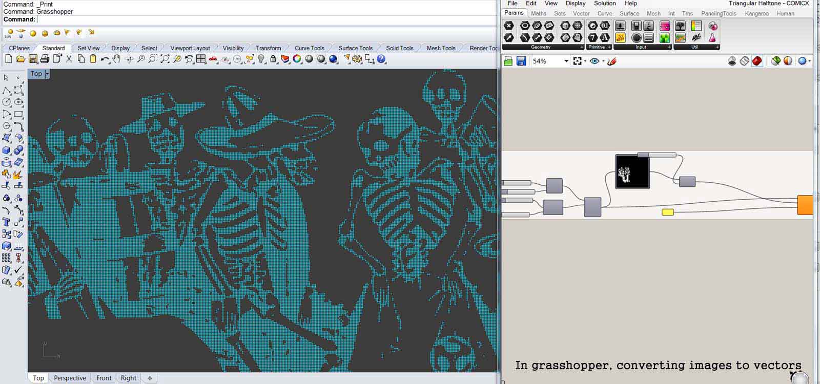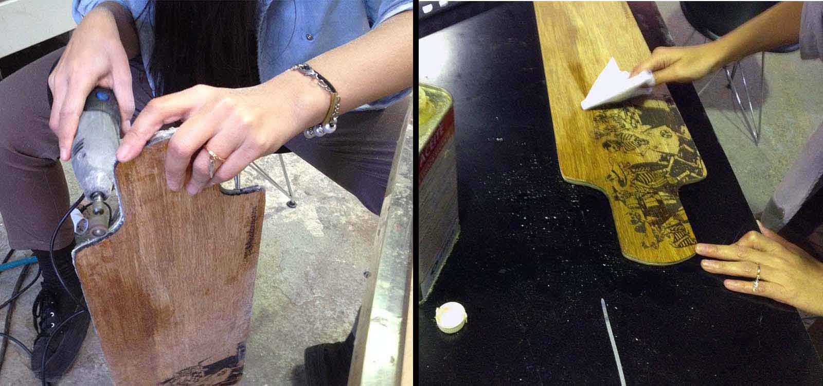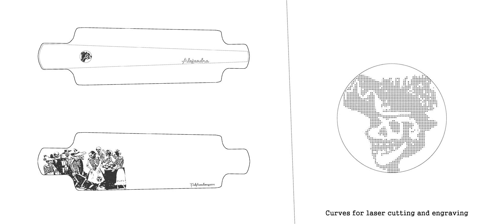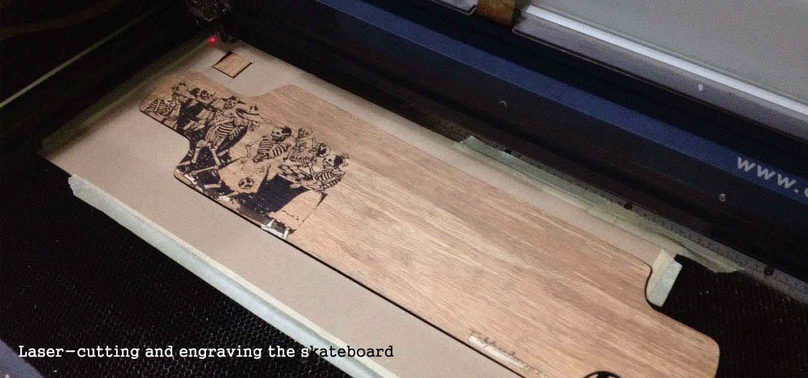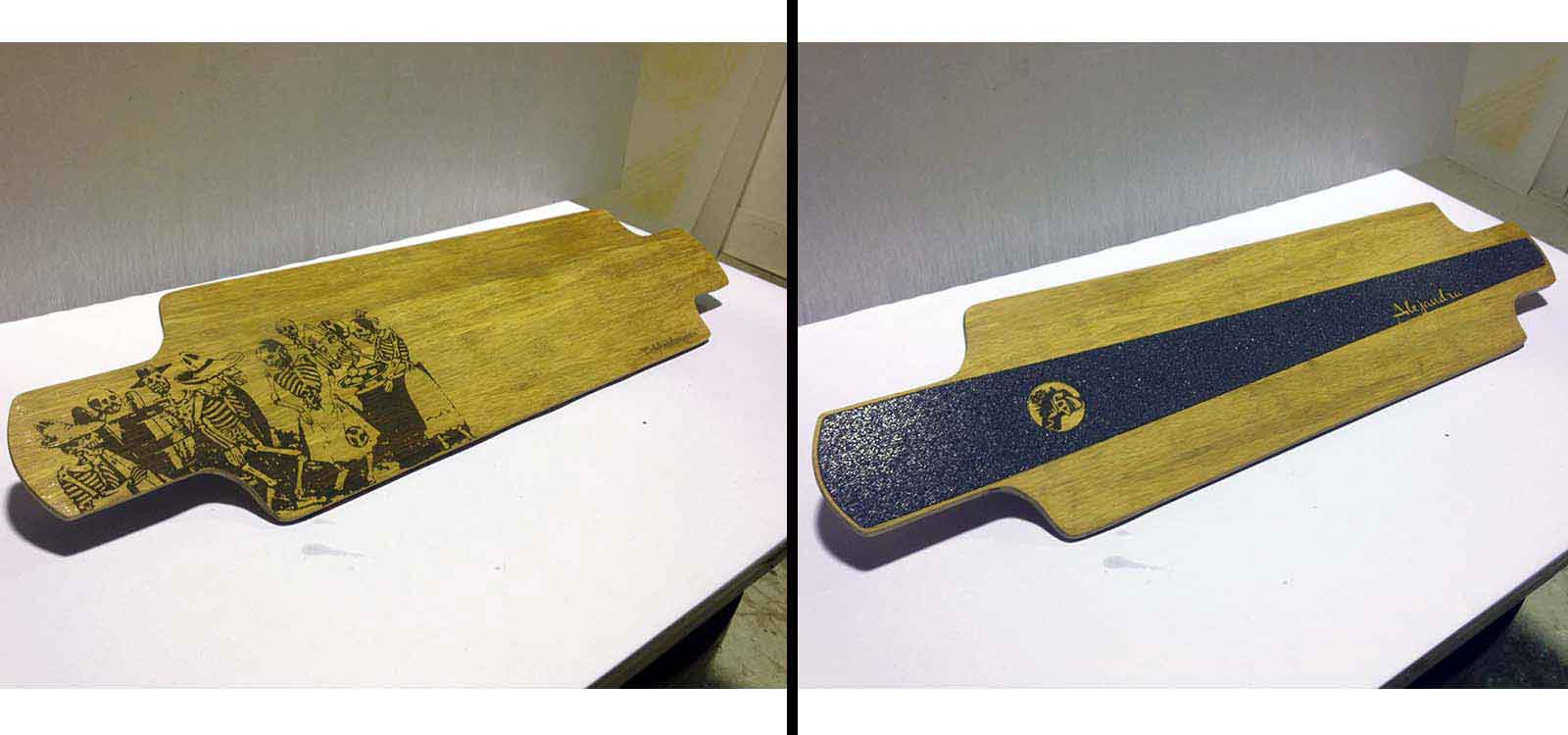 After cutting the layers of the skateboard, I personalized it. I took an image of a painting by the mexican artist Jose Guadalupe Posada and converted it into vectors using Grasshopper to be able to engrave it in the board.