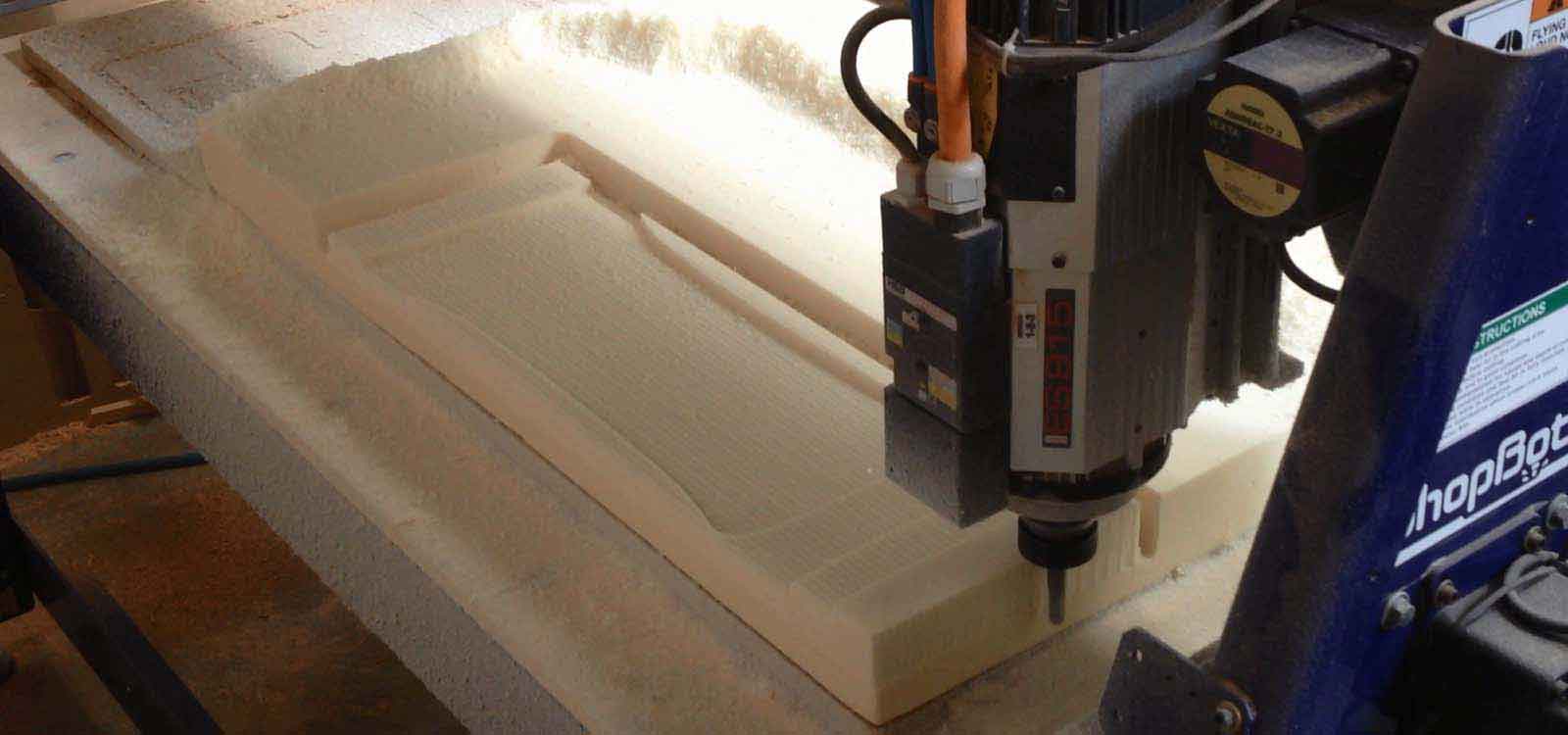 Next, we milled the curvature of the skateboard in the Shotbot Milling Machine on a High Density Foam board that was 7cm thick.