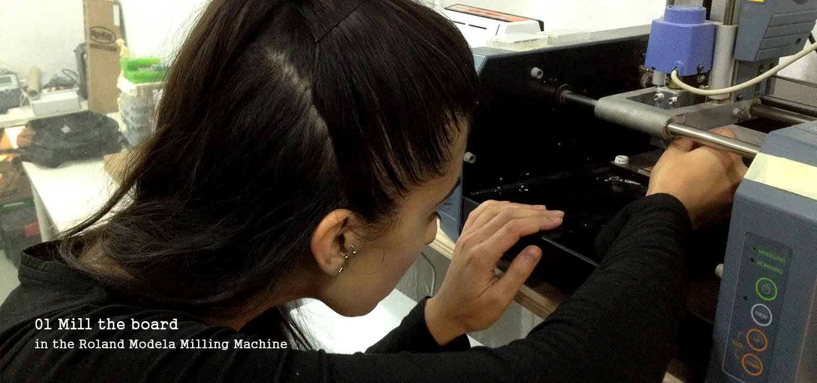 With this excersice I have my first experience making a circuit board. I had only play with arduinos before so I am excited to learn. First, I learn how to use the Ronald Modela Milling Machine . From the begining it gave me problems. I had to mill it 3 times. The second time because the drill broke and the third time because the screws of the platform were loose . You need to make sure everything is tight and balanced.
