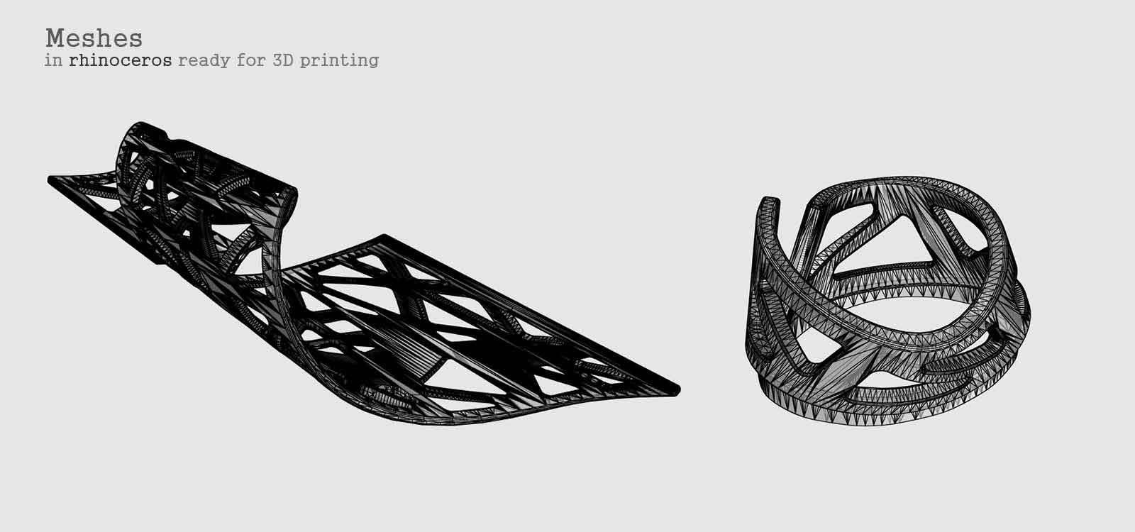 For this week's task, I wanted to make some pieces of jewellery. I developed a grasshopper definition based on the MN-tapeworm-script-v002 that allows to bend a perforated surface in different ways. By playing with the sliders you can define the shape you want to later convert it in a mesh to 3D print.