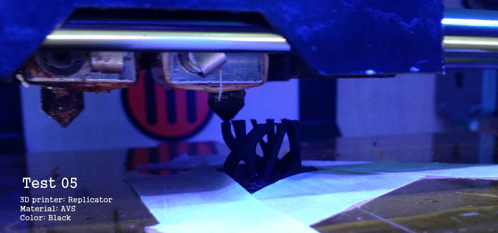 Finally, in order to not only have white objects, I used the Replicator with black ABS. The fist layer didn't attach very well to the platform (I couldn't find the exact degrees to heat it) so I had to tape it.
