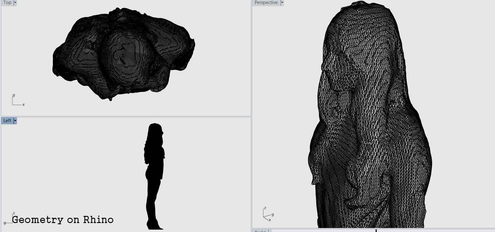 Skanect gives us .stl files that can be modified on Rhino. In my case, the geometry had a lot of "holes" that the printer would not recognize (open meshes). The best way to fill the holes, or to close the mesh, was using Grasshopper. At the end, xe managed to have good meshes ready to 3D print in the ProJet.