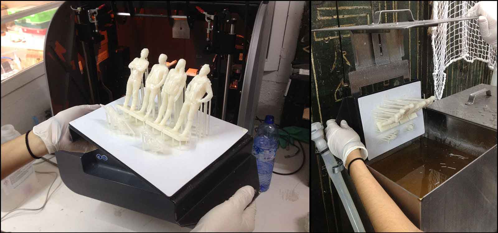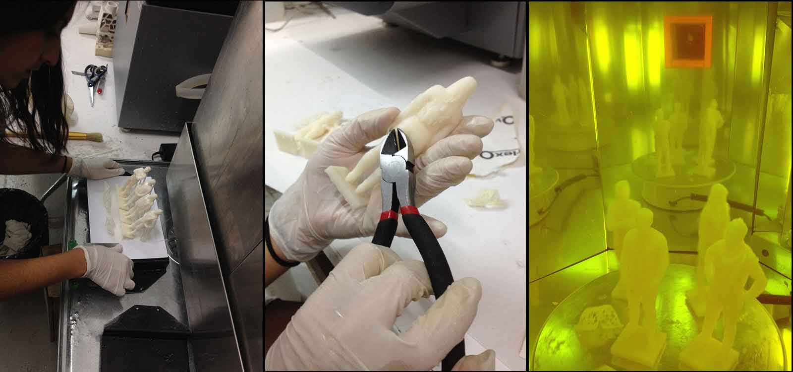It took around 10 hours for the 4 models to be 3D printed on the ProJet 3D printer, which works on a stereolithography process and gave us resin objects with an amazing resoution and resistance.
