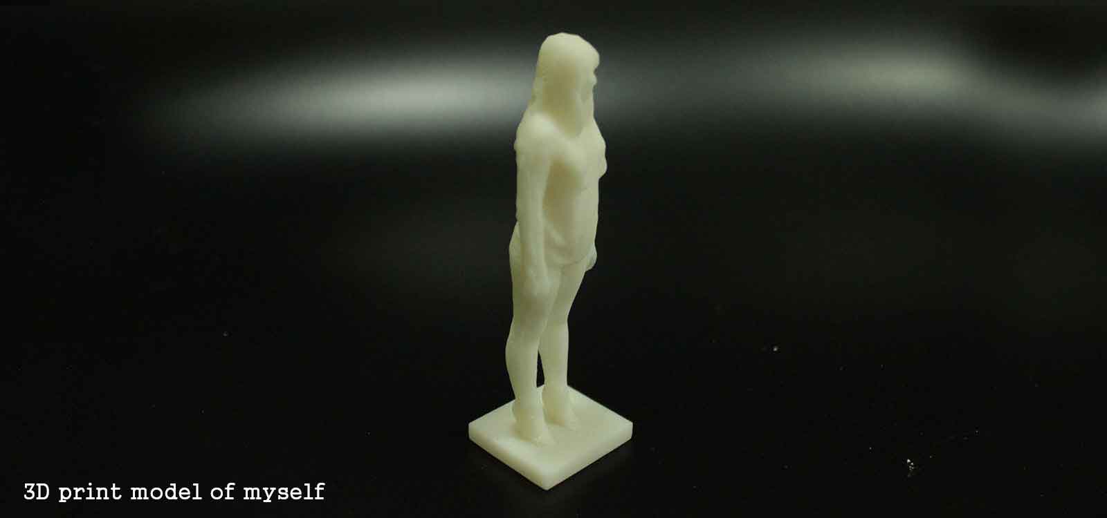 This week I worked on a team. We wanted to 3D scan ourselves and decided to use the Kuka to obtain a very precise scan. We used a regular Kinect attached to the robotic arm. Each one of us stood on a platform that rotates 360 degrees while the kinect, moved by the kuka, would get a full 'top to bottom' scan of us. Later on we fixed the meshes on Rhinoceros using Grasshopper and 3D print them on the ProJet for a better resolution. We also set different cameras to record the process and made a video. Check it out!