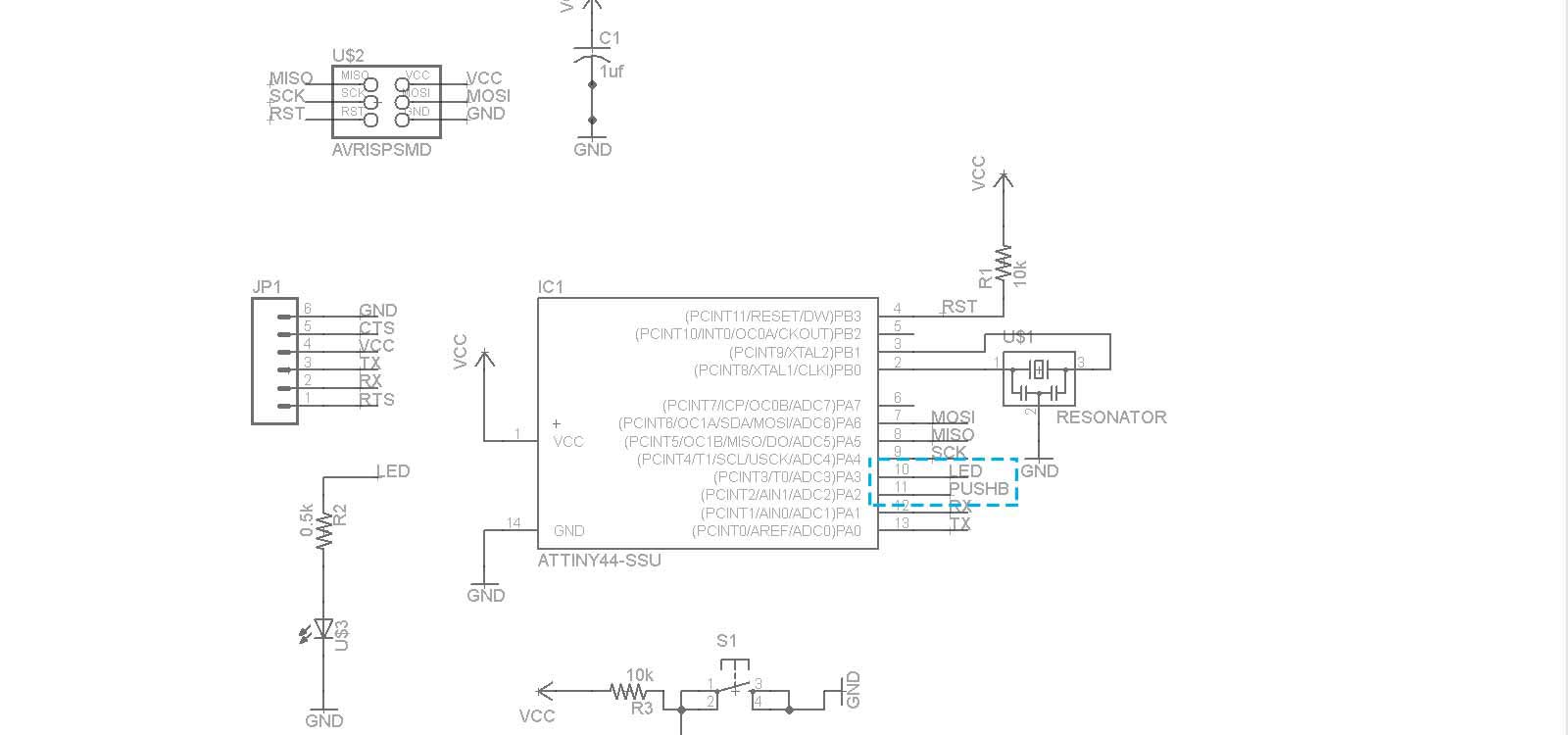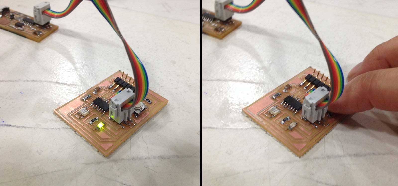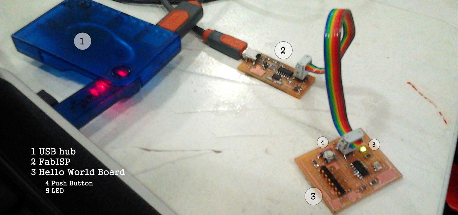 The aim of this assignment is to program the board we designed in week 6 . It is a Hello World Board with an extra pushbutton and a LED. It was a real challenge for me to make this work, mainly because my computer didn't recognize the FabISP. For programming it I used one of the examples that come with the Arduino 1.0 software and just changed the Pin numbers. Here is the process...