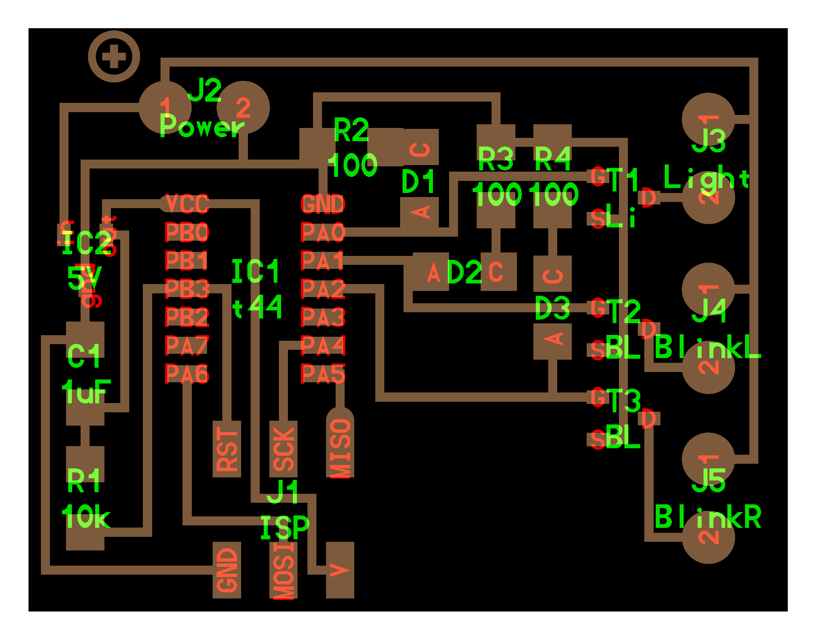 This is a ATTINY44 piloted by three switches, for operating 3 mosfets.
