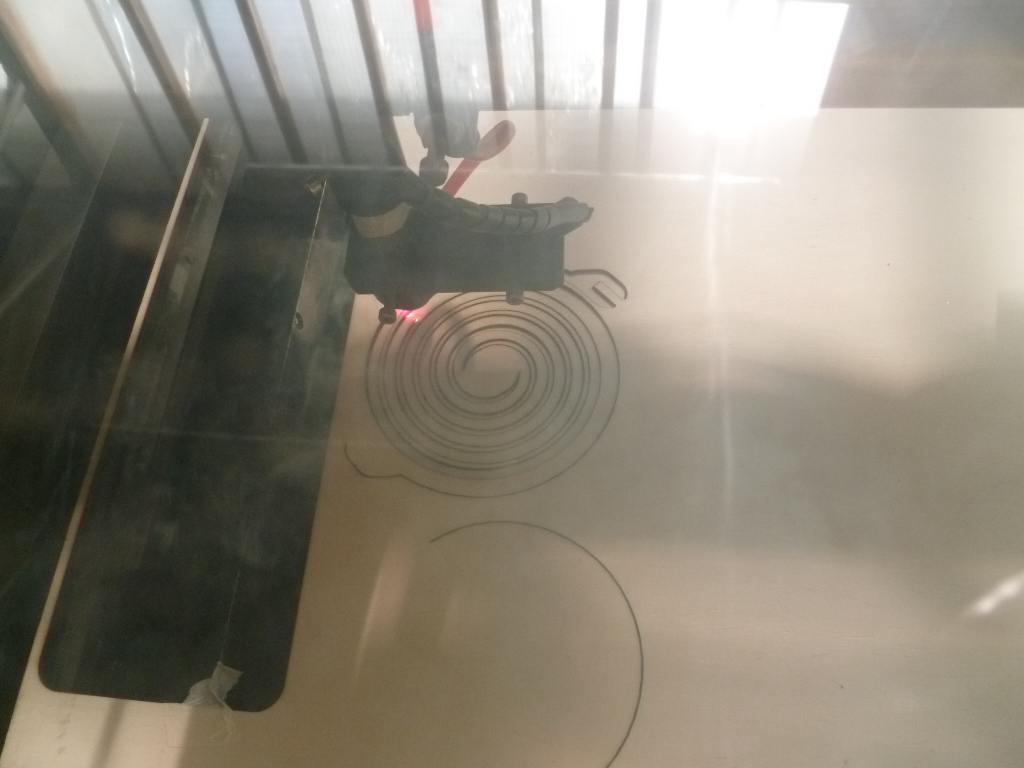 cuttingsthey happened without problem. To generate the GCODE for our lasercutter (wich is a chinese signsteak with smoothieboard opensource electronics) I use the mirific inkscape plugin (from DXF eport from openSCAD) that our member developped laserengraver_smoothie. with parameters : Z ofset = 7mm; cutting speed = 900; |