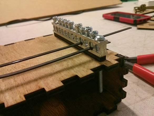 For my laser cutting project this week, I had planned on creating a kalimba which would be mounted on tracks to create a train similar to this. Unfortunately, I only had one day in the lab, so I decided to focus on creating the kalima first. I found this tutorial on Make, so I ran to Home Depot just before heading to Providence, and picked up an electrician's grounding bar and a roll of electrician's snake.