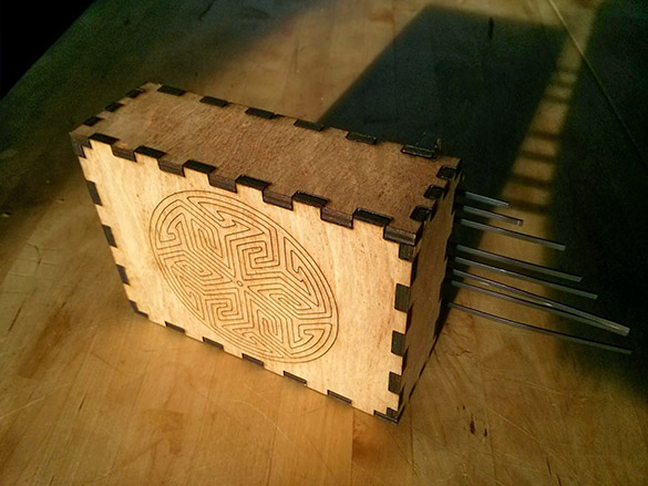 The fit was a little too loose after my first pas, so I needed to adjust my tolerances a bit after my first test. Since I had used Magic Box I wasn't able to adjust tabs via cloning in Inkscape. So, I broke the path, and increased the tab section by about 6 percent to get a tighter fit. Since this would have caused the corners to stop fitting properly, I only adjusted the tabs along the edge rather than any of the corners. I also opted to leave the side panels slightly looser so they could be removed to adjust the tines as necessary. Not exactly reconfigurable, but close I guess.