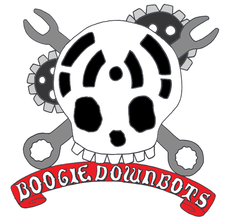 Did you check out that video? Good. As part of our team effort, some particularly industrious members of the Boogie Down Bots silkscreened hundreds of shirts, dozens of hoodies, and innumerable flags. We used this logo for most of our branding:
