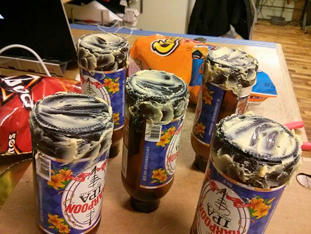 Next I coated the bottom of the bottles with mold release wax using a tongue depressor to apply it.