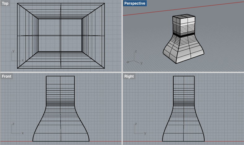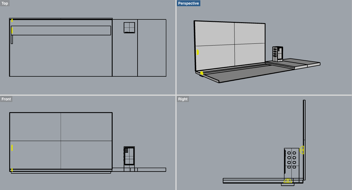 Right off the bat, I loved the 4 views that Rhino gave. Here is a screenshot of an early support I tried designing: