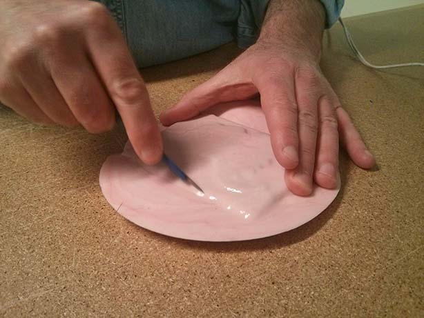 (the silicone was setting), we had to get creative and use a sheet of cardboard and a plate to make a simple mold. This actually worked well!