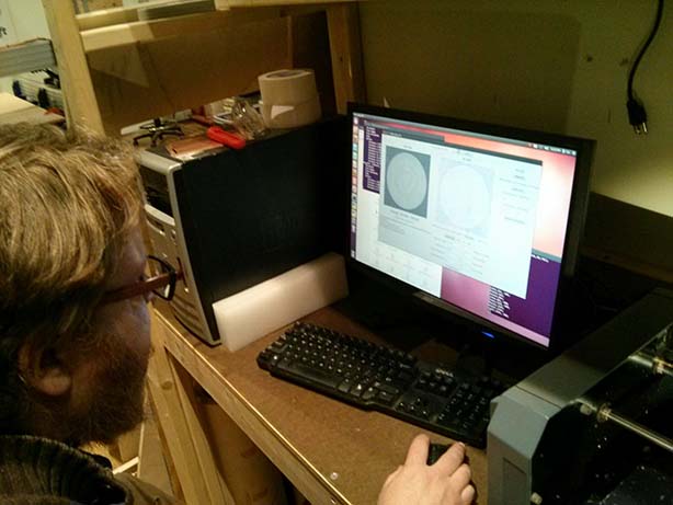 Compounding this, I had some weird issues with the Modela. It seems that files stay in the buffer, and in between attempts and bit adjustments I ended up with several unexpected plunges where the machine would shoot straight into the wax and I had to manually cancel. My job was so complicated that the whole run was over 10 hours, so I really wanted to get it right and then leave it overnight. However, it seemed like things were getting more and more complicated. Shawn recommended setting it to the 3D finishing pass right off, but I realized that the rough was probably better as it would follow the vector path rather than trying to go over the image as a grid.