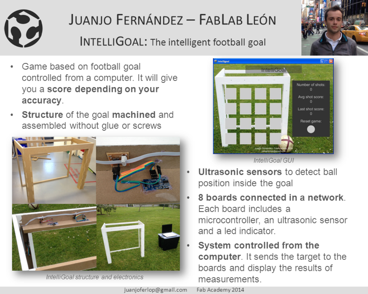- Computer controlled machining was a good option to create the goal structure. All the parts assembled in a perfect way and the final structure was very robust. Although the sensors were properly attached to the goal with the silicon gun, it could be improved with a custom piece designed for that.
