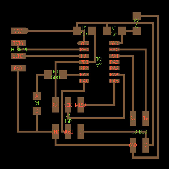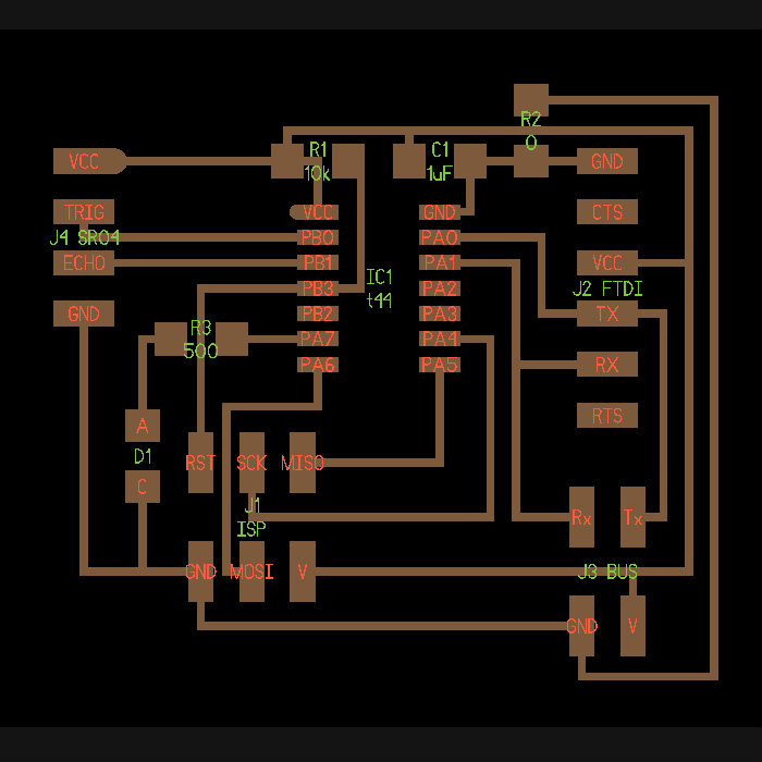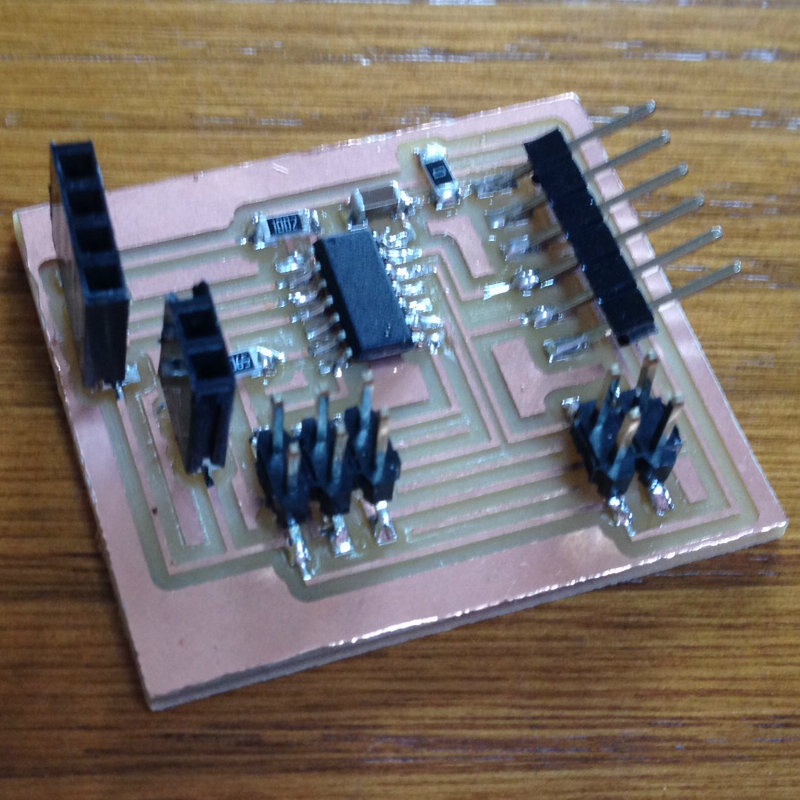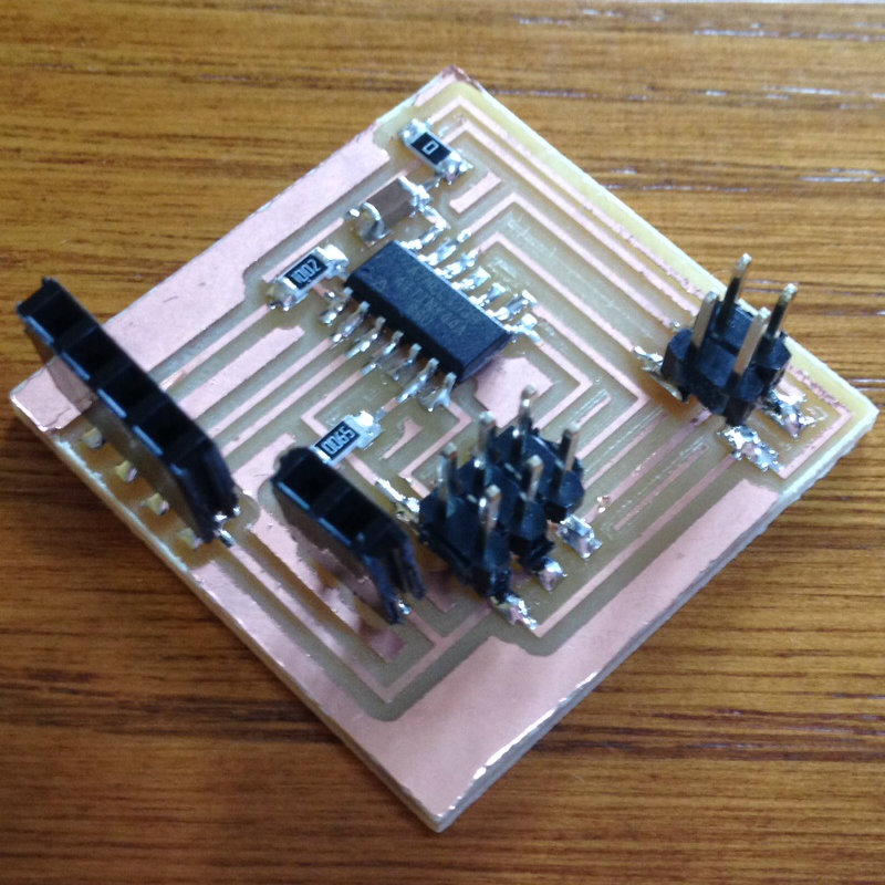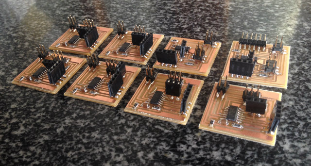 All the boards will be attached to the same bus and connected to the computer, and the core of each one will be an Atmel Attiny84. I went to the Attiny84 instead of the typical Attiny44 used during FabAcademy because the cost difference is very small and I needed those 4kB of program memory extra.