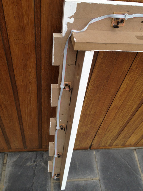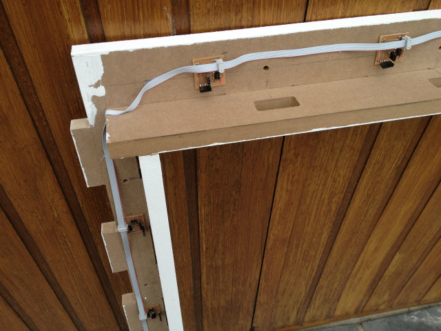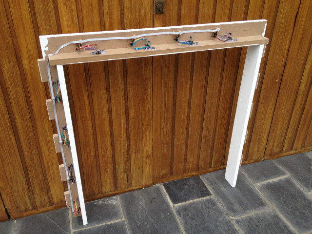 Due to the size of the goal and the typical size of a football ball, I calculate that I need 8 sensors to cover the whole goal: 4 in the top and 4 in the side posts. That brought to me the first doubt: use one electronic board (and in consequence one microcontroller) with a lot of inputs and outputs, or design several and simpler boards communicated by themselves? Finally, I decided by the second option.