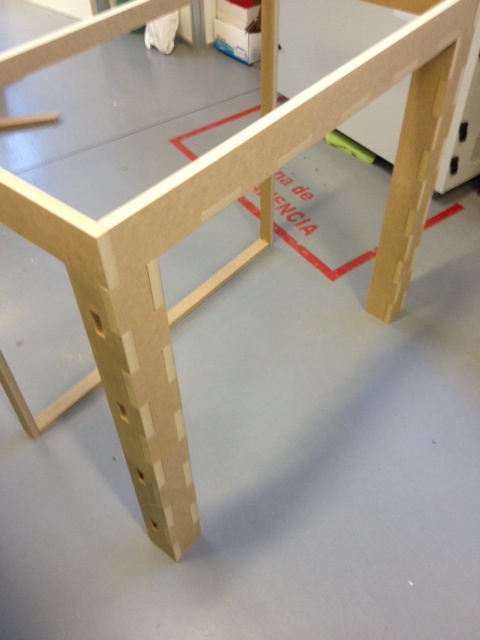 For the assembling of the pieces I thought about many options, but finally I used finger tenon joints, as it seems to me it would give good consistency to the design. You can find different wood joints in this interesting webpage.
