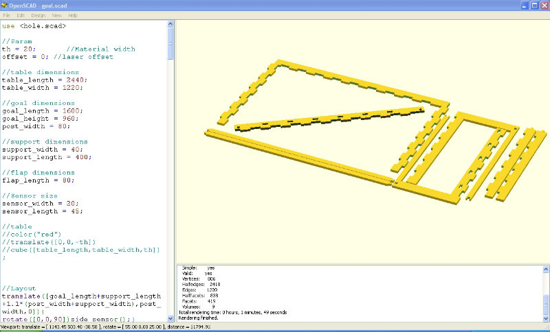 The first step before making the goal is of course to design it. To design it I used OpenSCAD, as it will allow you to modify easily the design thanks to the parameters if the parts do not fit well.