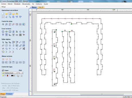 The CNC milling machine available at FabLab León is a Tec-cam 500, with a bed size of 2440 x 1220 mm. The software used to export the files to this machine and define the different trayectories, estrategies and so on is VCarve . The goal will be machined and built in wood.